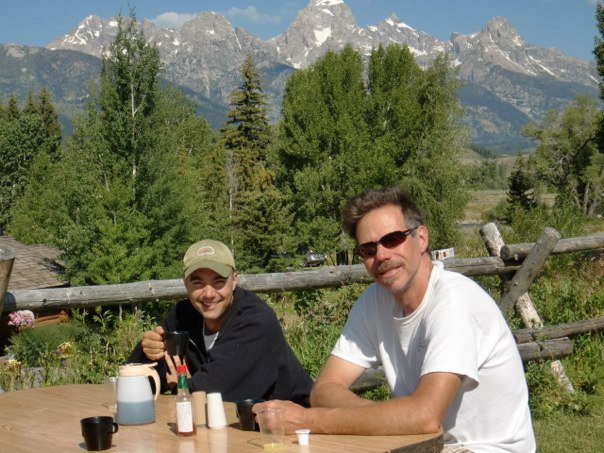 However breakfast at the Chuck Wagon the following morning was much better. Just outside the park entrance in the 'town' of Moose, the sourdough pancakes with many cups of coffee hit the spot. Sitting on a bench and gazing to where we climbed the day (night!) before also proved to be the perfect ambiance.