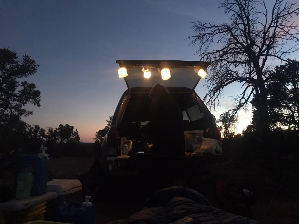 Before heading into the canyon, we enjoyed our customary camping out the night before with our customary views of the unblemished night sky, the Milky Way, and our usual hot drinks with a “bit of something” added.