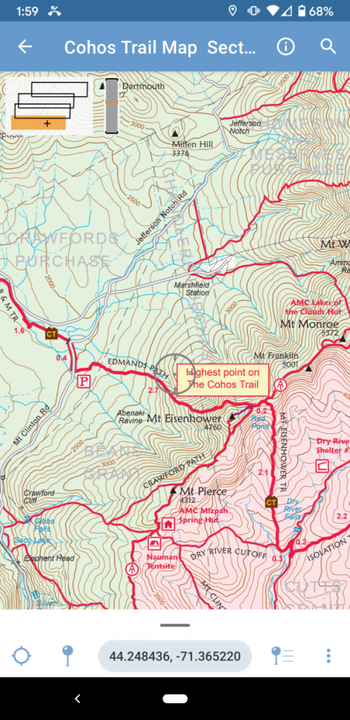 - And my personal use – Commercial or specialized maps for a particular trail, route, or area. I often hike, camp, and backpack in the La Sals, where accurate maps make a worthwhile investment. And I still hope to do an across New England walk, and the Cohos Trail maps are only available electronically in the Avenza map store. If I did the CDT or a similar trail again, I could see myself using the free maps as an adjunct to other resources such as Atlas Guides (Guthook).