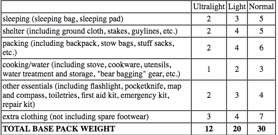 I have references to both print sources from the 1980s, the 1960s, and the 1920s mentioning gear loads that we’d consider ultralight.