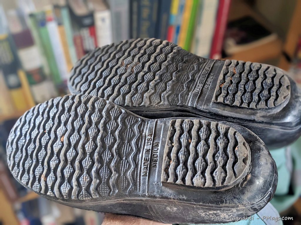 Because they breathe so well, they work in both cool (around 40F or so) and cold conditions. They’ve become my “go-to” footwear when Joan and I camp and live in my always-packed duffle bag.