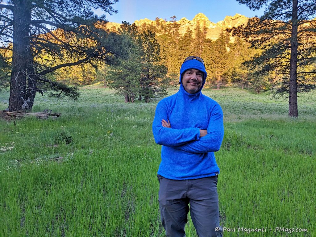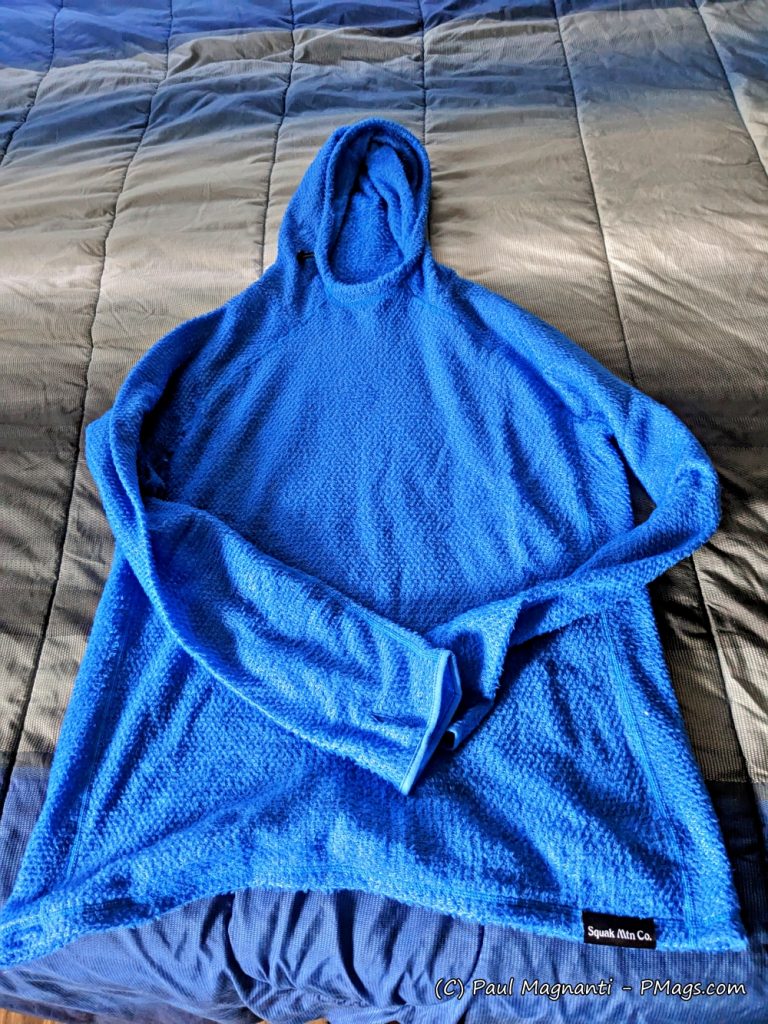 Because of the trim fit, unlike other fleeces, including the Squak grid fleece hoodie, does not come down much past the hips. Some people may prefer that type of coverage, especially for camp use or if you tend to run cold.