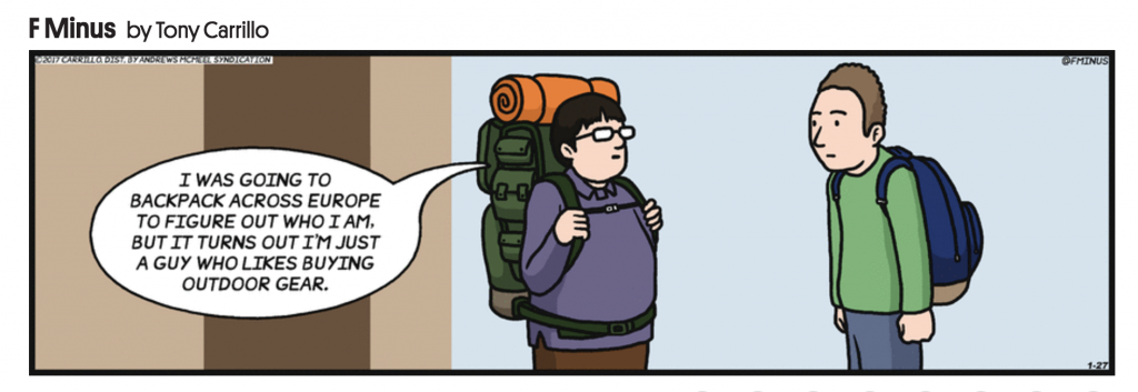 The second comic from F-Minus by Tony Carrillo take this REI or similar consumerism to what seems to be the logical conclusion 🙂