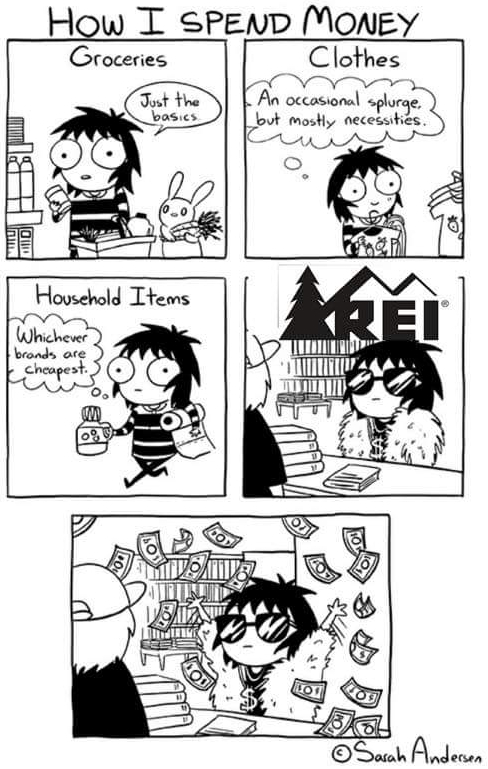 But if buying gear is the most active part of your outdoor hobby, time to think differently. Sock that money away for when you can do trips, be selective about what is actually bought, and perhaps do more reading about the outdoors rather than buying gear. A good read about increasing skill sets, journeys people have taken, or places to see is going to be time well spent if you can’t get outside.