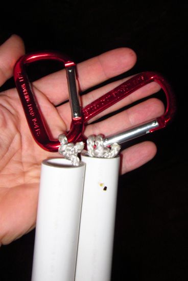- (2) small ‘biners. The ‘biners you would use to attach a water bottle are not suggested. Climbing ‘biners are best if you have them available. But ones at the hardware store not rated for climbing, but can handle the weight, will be more than adequate.