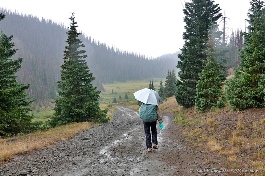 So how do you stay comfortable? Notice I said comfortable, not dry. In this kind of weather, staying 100% dry for days on end isn’t realistic. What is realistic is managing your layers so you’re cool and a little damp while hiking, then warm and dry once you’re in camp.