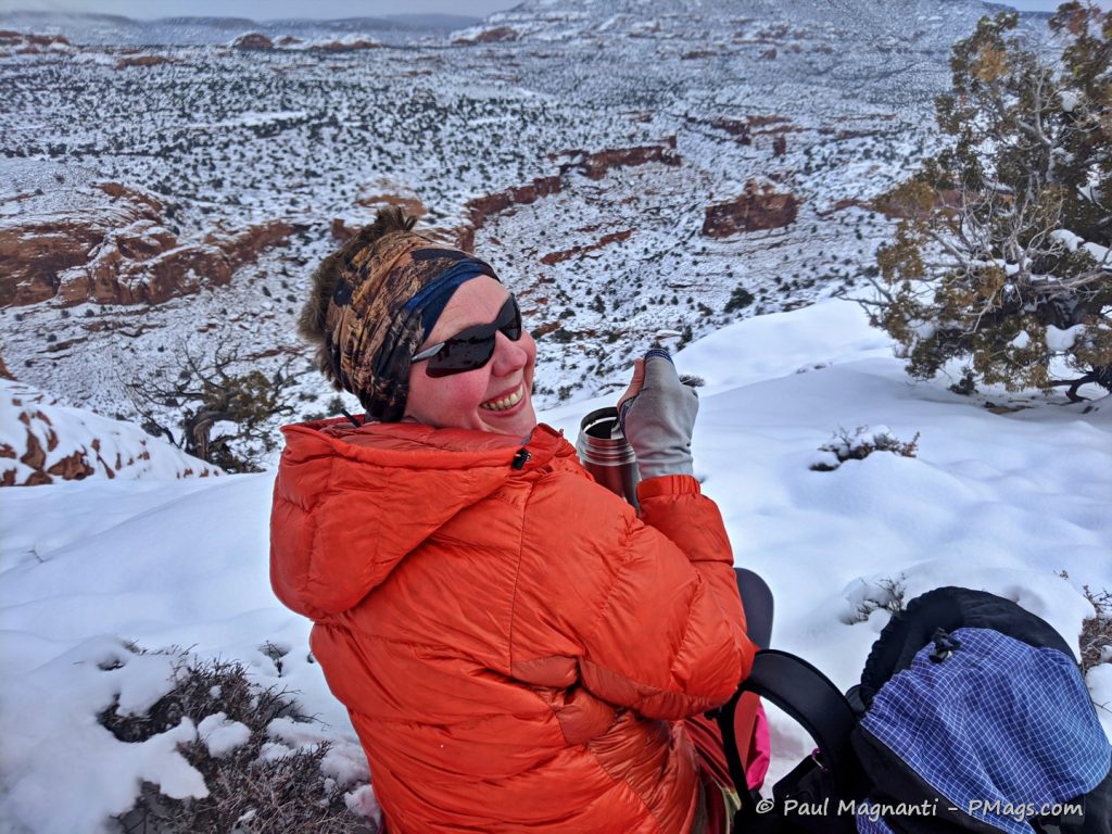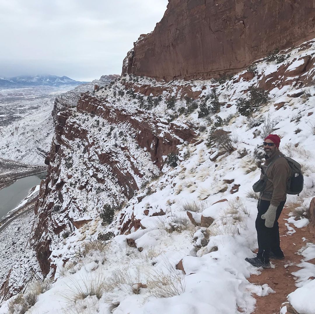 Though the rim could be vertigo-inducing for some (bring microspikes and poles if so!), the quiet of a Moab winter and the unique view scape made for a memorable hike in our backyard.