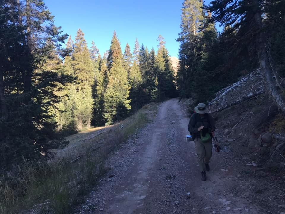 The following morning we made the short drive to the trailhead, hoisted our packs, walked down the trail, and veered cross country to get near the cusp of the treeline.
