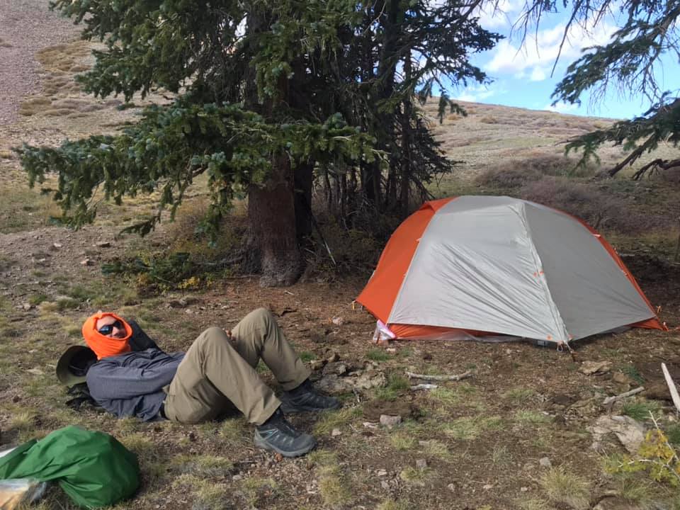 With the gray clouds moving in and the related colder temps moving in as well, we decided to find a camp in the later afternoon and go higher in the morning. We found a perfect site near a spring, at the edge of the treeline, sheltered in the trees, and cow approved!