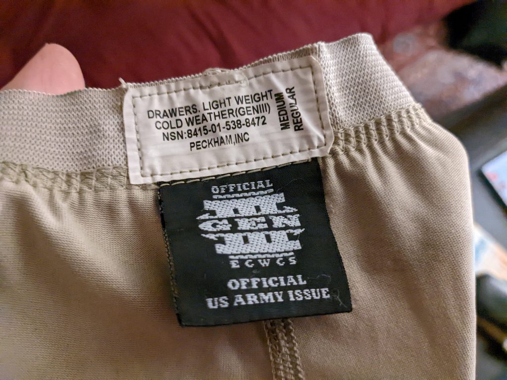 A case in point, and something I previously mentioned, is the silk-weight bottoms from the current ECWCS the military uses for issued clothing.