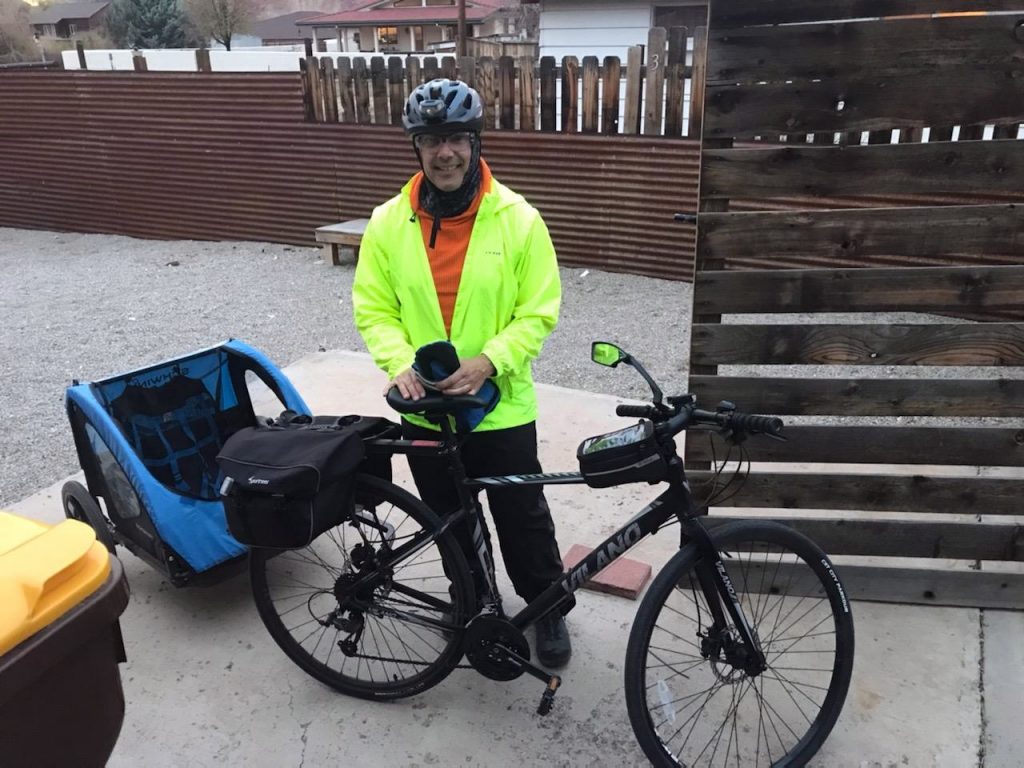Clothing for our bike commute gives us challenges in terms of extremes. Though we live in a desert, it’s a high desert with temperatures typically in the mid to high teens for winter and over 100F in the summer.