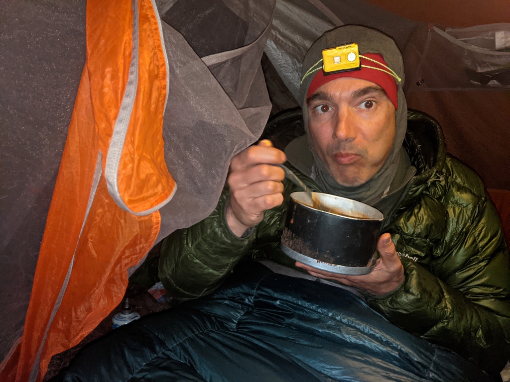 Or packing a sub-3oz Luci Ligh “candle lantern” because hanging out in a tent together during winter gets dreary when the two of you illuminate everything by the cold light of an LED headlamp.