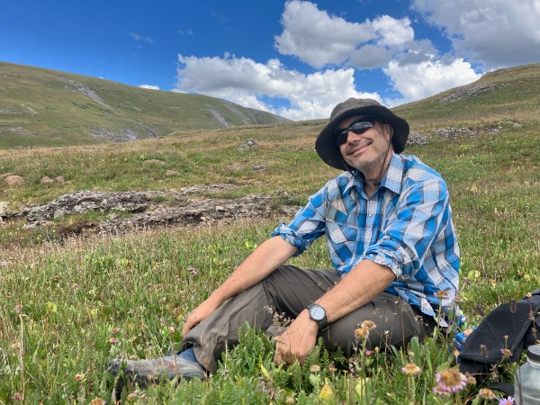 On a local Moab hike, I am using the Squawk Swell sun hoodie.