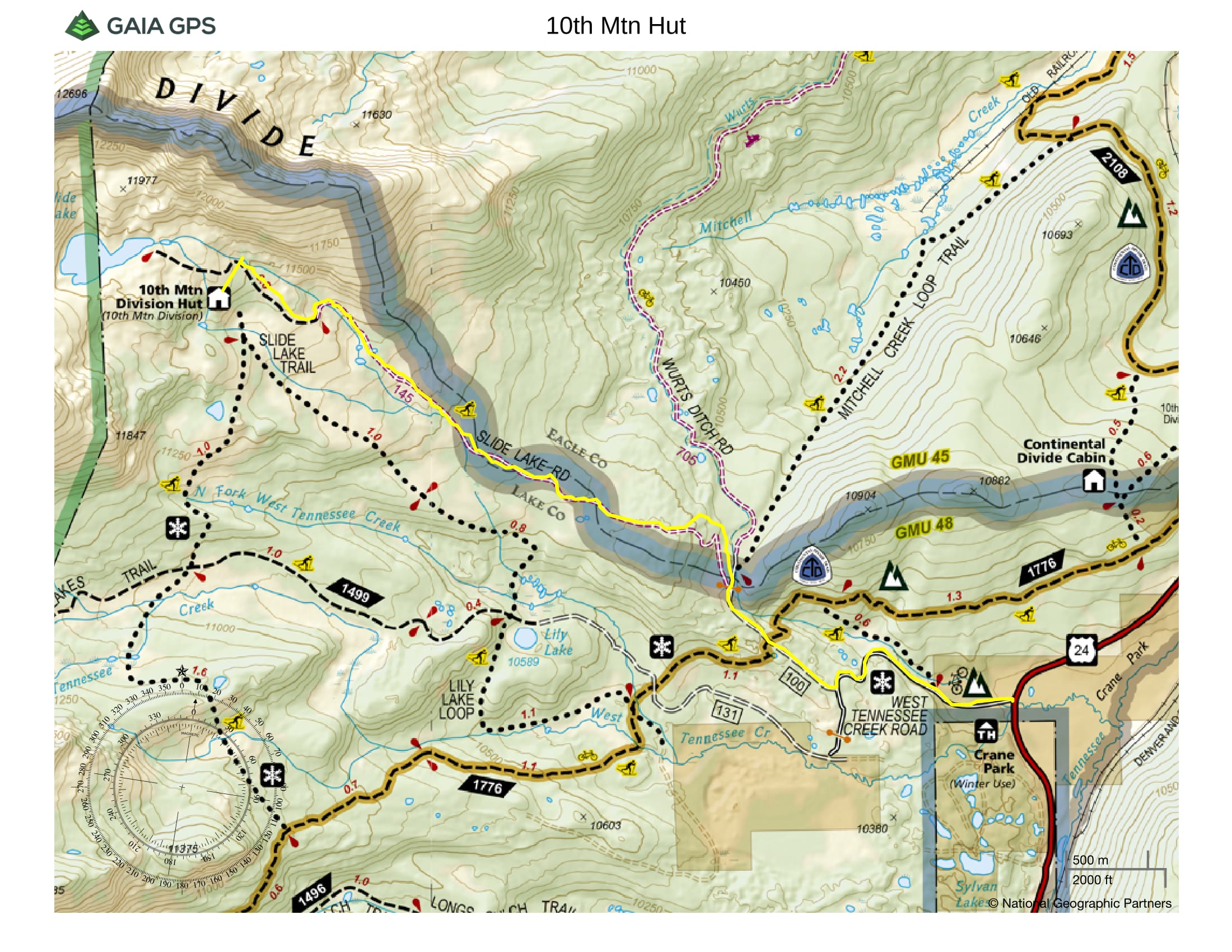 Where I will be on a winter hut trip. I shared this map with friends. We’ll be schlepping in lots of food and wine with a sled hence the road route. 🙂