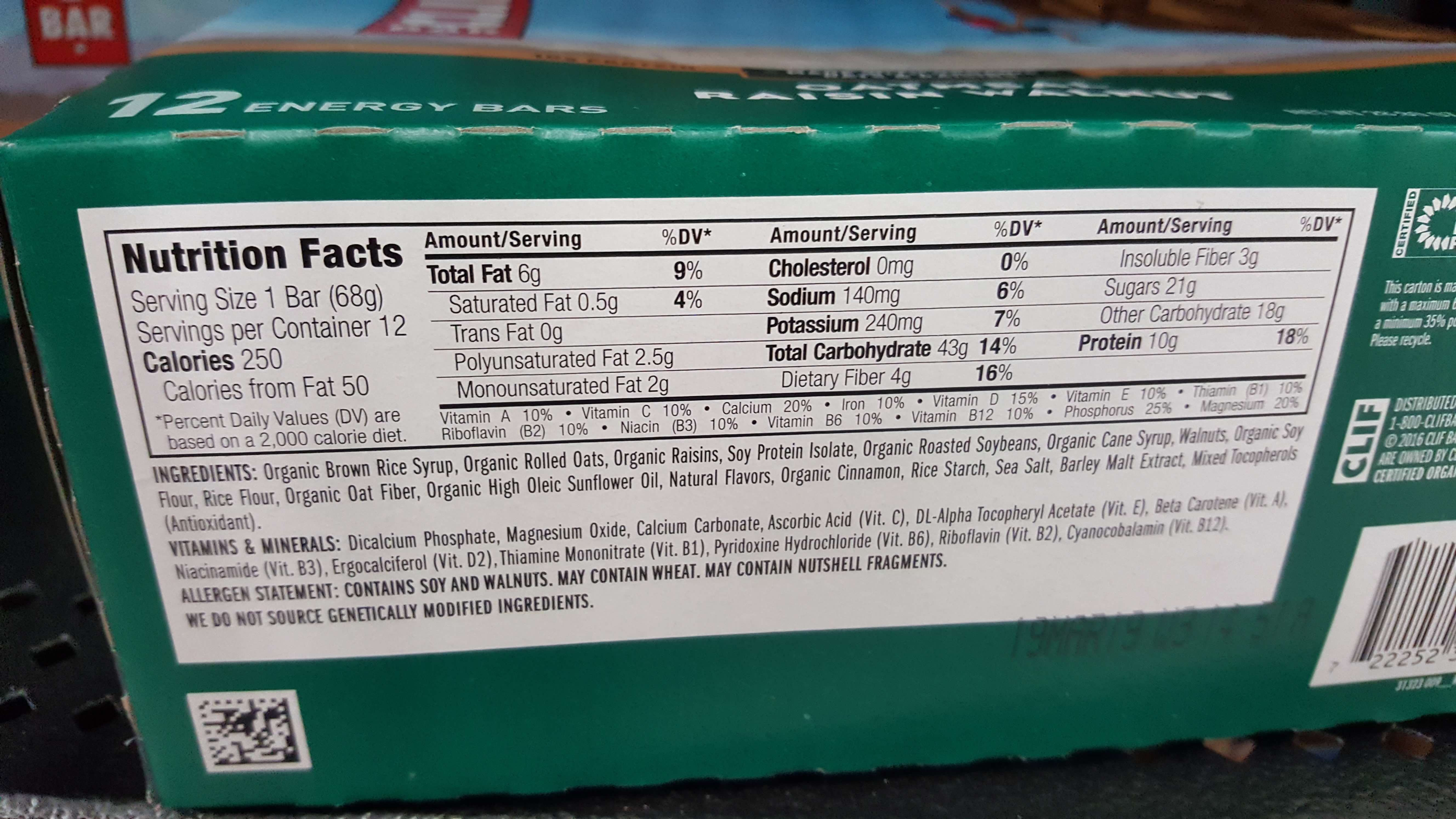 A Cliff Bar ends up being $1 each…or less than half the price total at $3 for three bars and the equivalent in calories (a little more, actually), with more protein, carbs, almost as much sodium and fat, etc. Both bars also have the organic ingredients that certain demographics love.