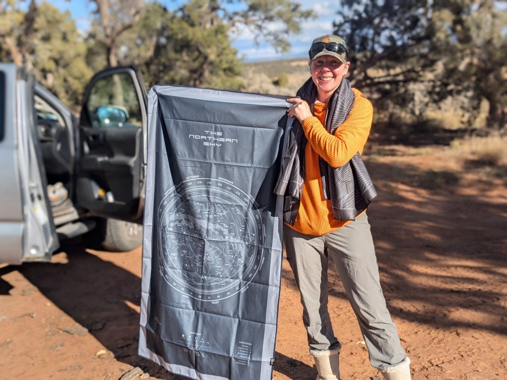 We received a constellation map and a topo map that she quickly commandeered.