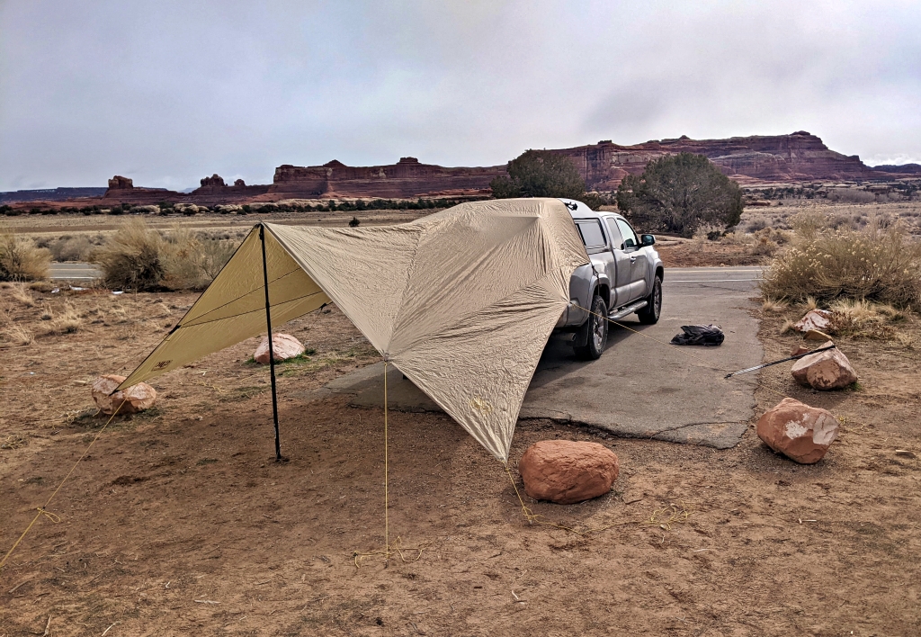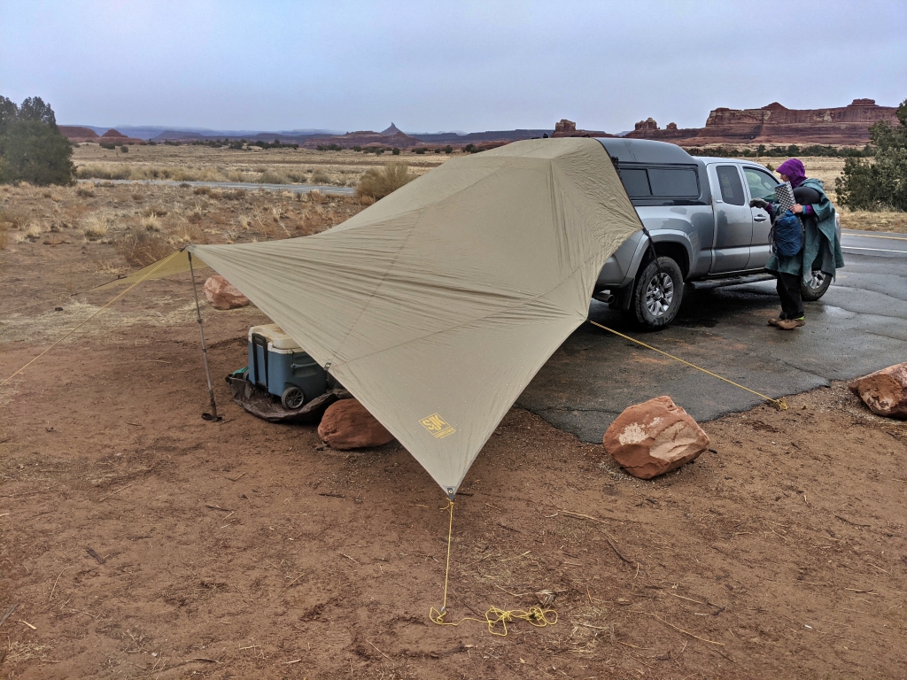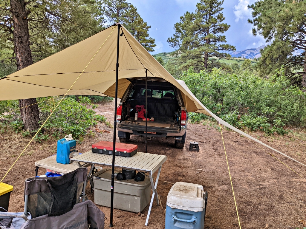 When I mentioned our Toyota Tacoma camping rig and our “perma-camping” kit, I noted the Slumberjack SJK Roadhouse tarp.