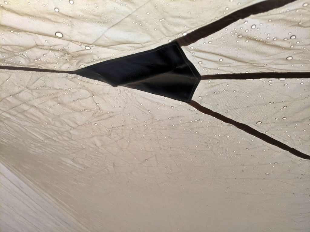 There are many tie-out points, reinforced grommets, reflective guylines, and a reinforced patch in the middle to make an almost pyramid-like shelter, too.