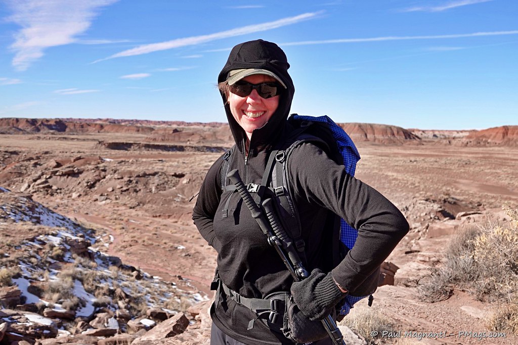 First, I’ll start with Joan’s experience. Joan wanted this garment to work so well for backpacking; she enjoyed the lack of odor from the half-wool garment vs. polyester, how well it fitted her, the warmth and breathability of the garment, and the aesthetics of it overall.