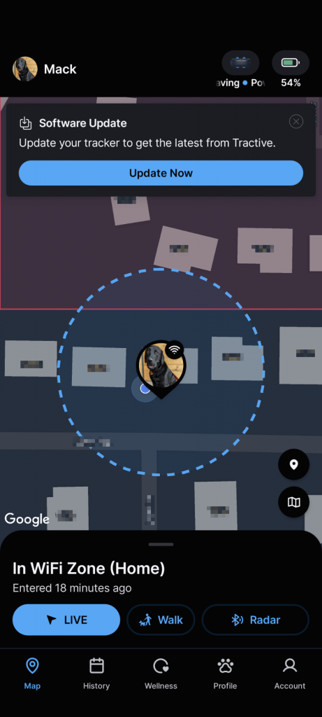 For those without physical fences or whose dogs have a tendency to escape, the virtual fences feature of Tractive GPS can be a real asset, providing alerts if your pet strays from a designated safe area. While this functionality wasn’t a necessity for us, given that Mack is contained by a physical fence and doesn’t wander, it offers substantial peace of mind for others in less secure or more open environments. It’s an added layer of security, ensuring that even if physical barriers fail, the virtual fence will keep tabs on your roaming companion.