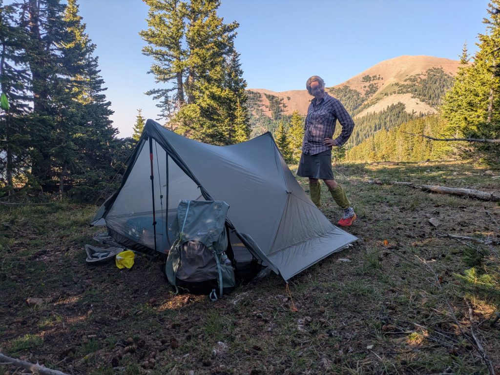 After a gear failure, Joan switched to a pricey but effective Tarp Tent Notch Li double-wall DCF shelter during the thick of Colorado’s “monsoon” season on The Colorado Trail this year.