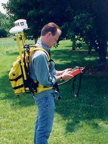 Backpack-mounted survey class GPS with an antenna. From NOAA.
