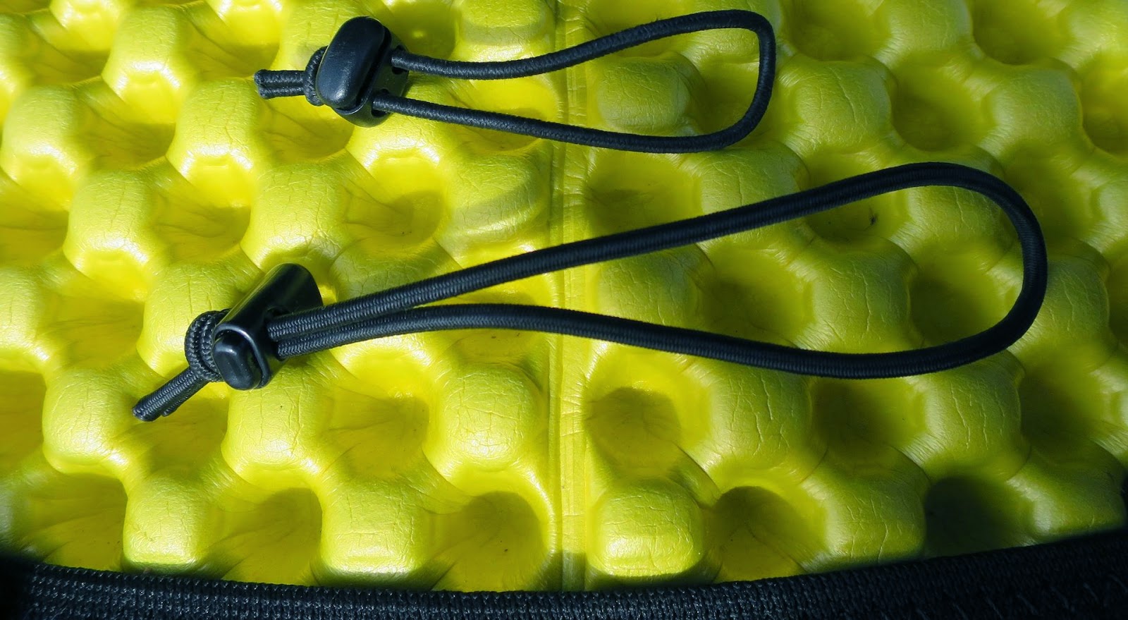 For materials, get two shock cord loops with cord locks (3/32″ shock cord), and a short (3″) piece of 1/2″ (inside diameter) foam pipe insulation.