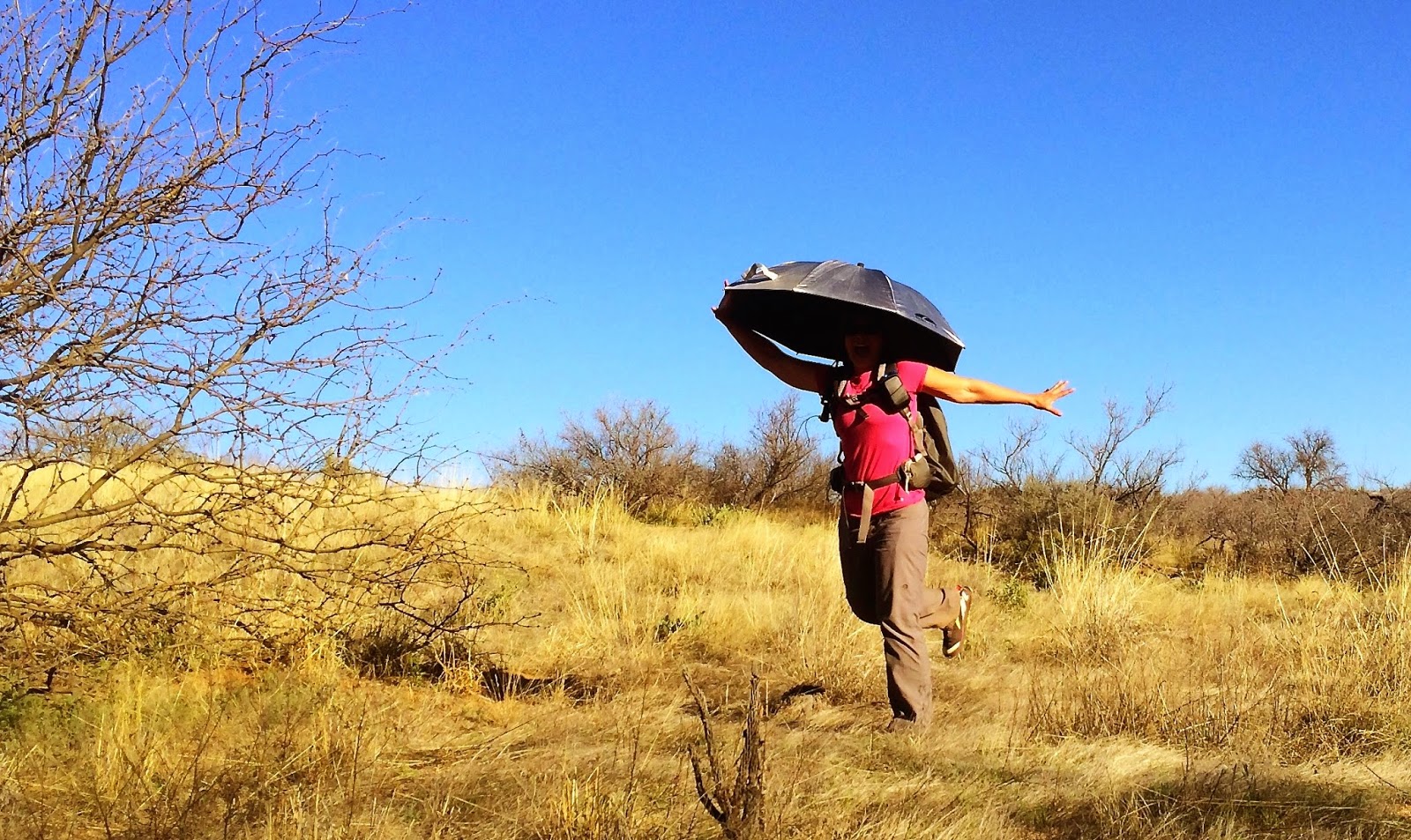 And still not convinced about the utility of an umbrella? Here are some other uses beyond rain and sun protection. Umbrellas provide the protection I need to traverse trails unharmed safely. When deployed, the shiny, silver reflective properties of the umbrella and it’s unique-deflecting dome shape shields me from any travails of the trail.