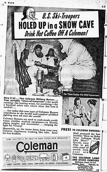 - The Coleman white gas stove aka “The Pocket Stove.” As with many outdoor items in the twentieth century, this item came out of World War II. After World War II, Coleman marketed the stove to the growing middle class with disposable income who wanted to camp. Easier to use than a campfire, and most backpackers soon started cooking over a stove vs. the fire. And by the 1970s, with a rather large boom, camp stoves become mandatory for cooking in many wilderness areas.