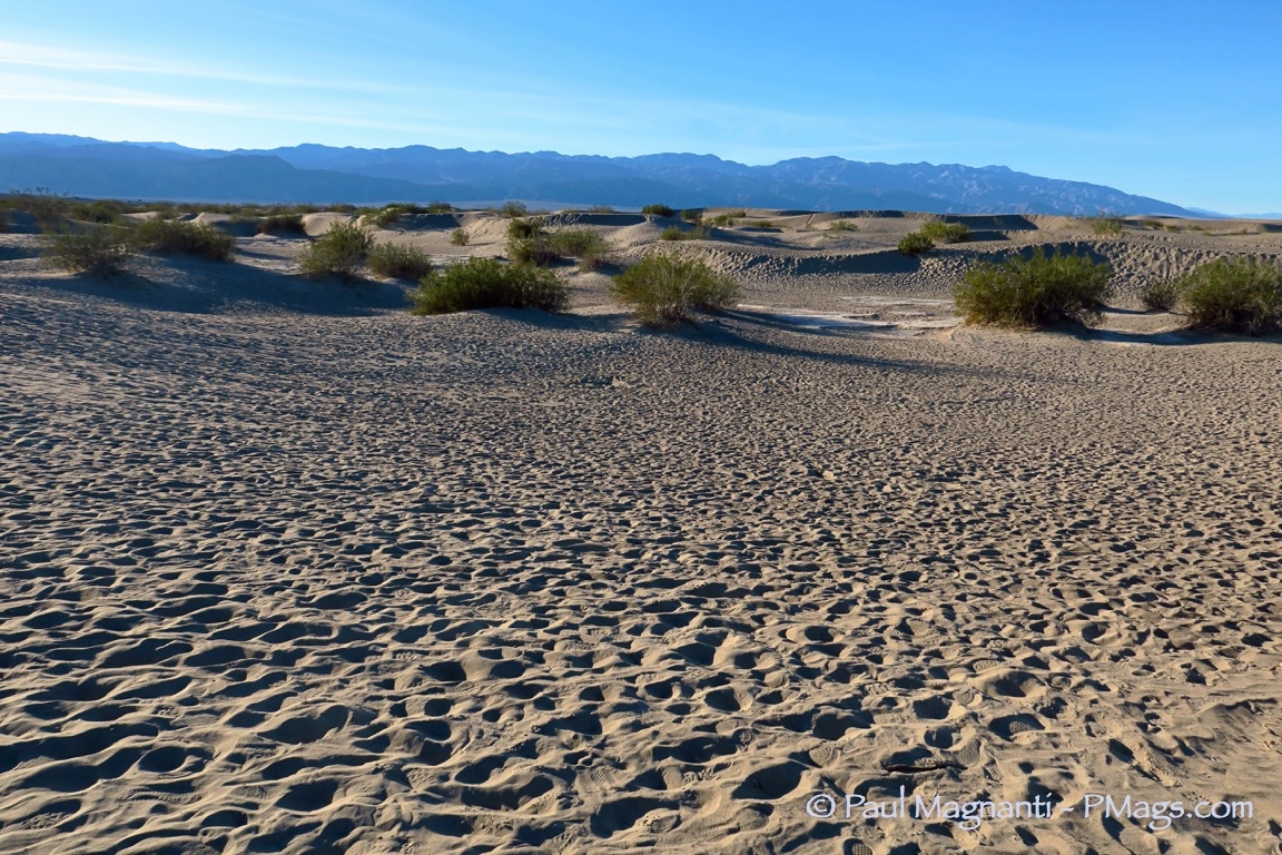 The Mesquite Flats Sand Dunes, being above sea level, had some vegetation. But was otherwise dry. In the late afternoon light, the dunes beckoned. A suitable introduction to the park.