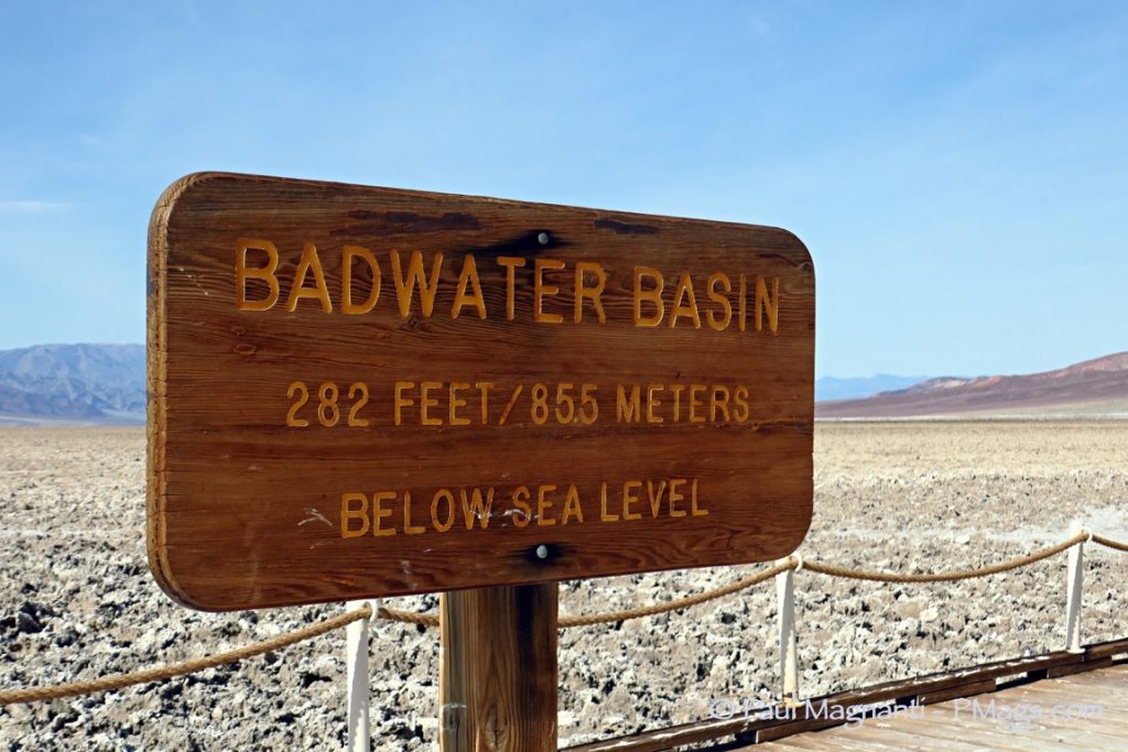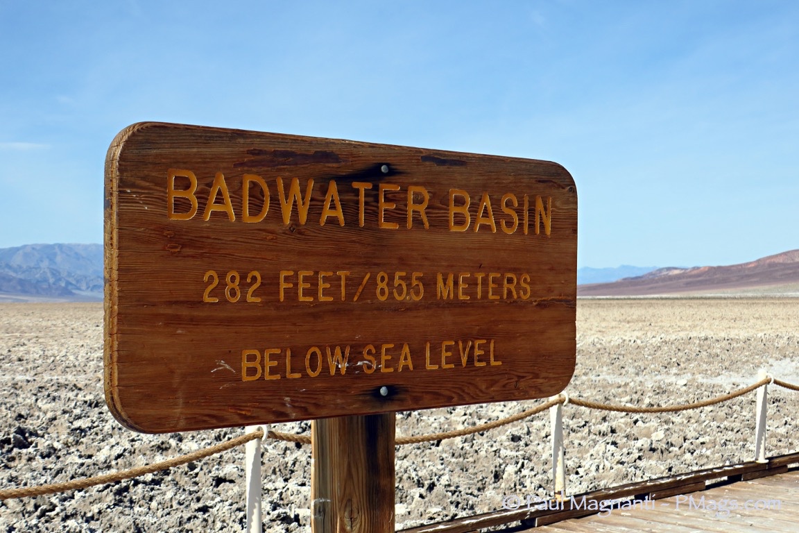 From a park high point at 5000′, it was time to go to the park, and North American’s, low point: Badwater Basin. (Some wags may say Washington D.C., the Pet Rock Craze, or reality TV are one of many possible lower points in American…but I digress. 😉 )