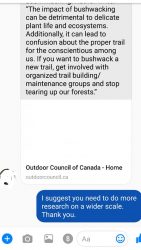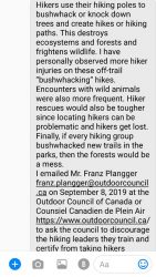 I’ve experienced this dogmatic view personally. A person wrote to me earlier this fall because I published an article about off-trail hiking. Or so the person claimed. I have no idea which piece, the person is not in any hiking circles I frequent from what I can tell, nor do we have any FB friends in common, I rarely use the term “bushwhacking” to describe my travels, nor had I written such an article in recent months.