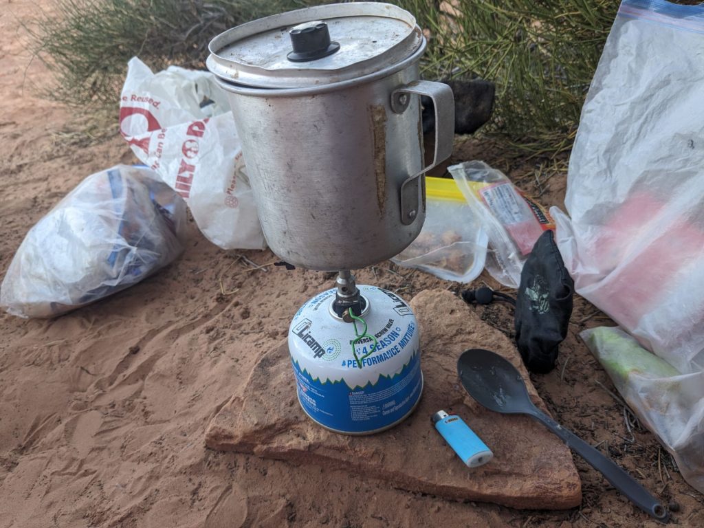With the fire danger now found throughout the American West, it ensures a stable and fireproof platform to make mac’ cheese, heat water for the rum and cider course, and perhaps some last-minute fondue delights (I’ve never actually done this backpacking, but we could!).
