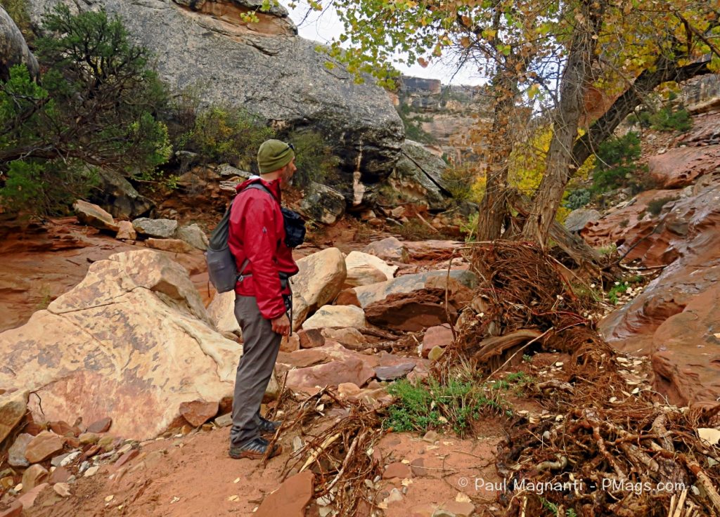 The gear I pre-pack is not my primary gear, but it is by no means sub-standard. It just might be a little heavier, perhaps more durable for variable conditions (wetter, off-trail bushwhacking, scrambling) vs. gear I can swap in and out when backpacking, stripped-down somewhat or only older but still functional. But in the end, I have equipment and clothing to be comfortable in most three-season+ day-use conditions that don’t involve deep winter travel. For deep winter, I am typically on skis, and that is a different kit. Since moving to Utah, however, I’ll day hike or even backpack when there are icy and cold conditions, and my Hillsound Trail Crampon Ultra spikes (14 oz.) “live” in my daypack for those months.