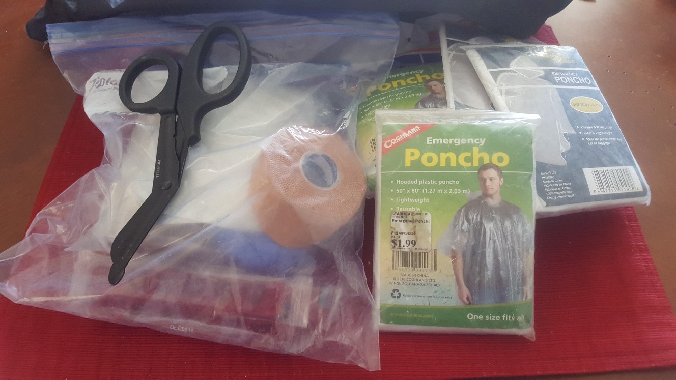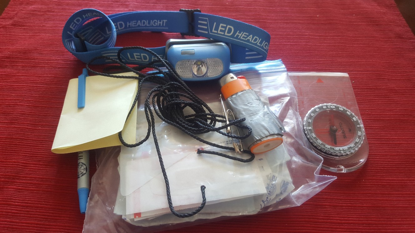 | First-aid and repair kit; personal use | 4 | Band-aids, 3 feet bank line, gauze pads, safety pins, pen, paper, and a lighter with duct tape. |