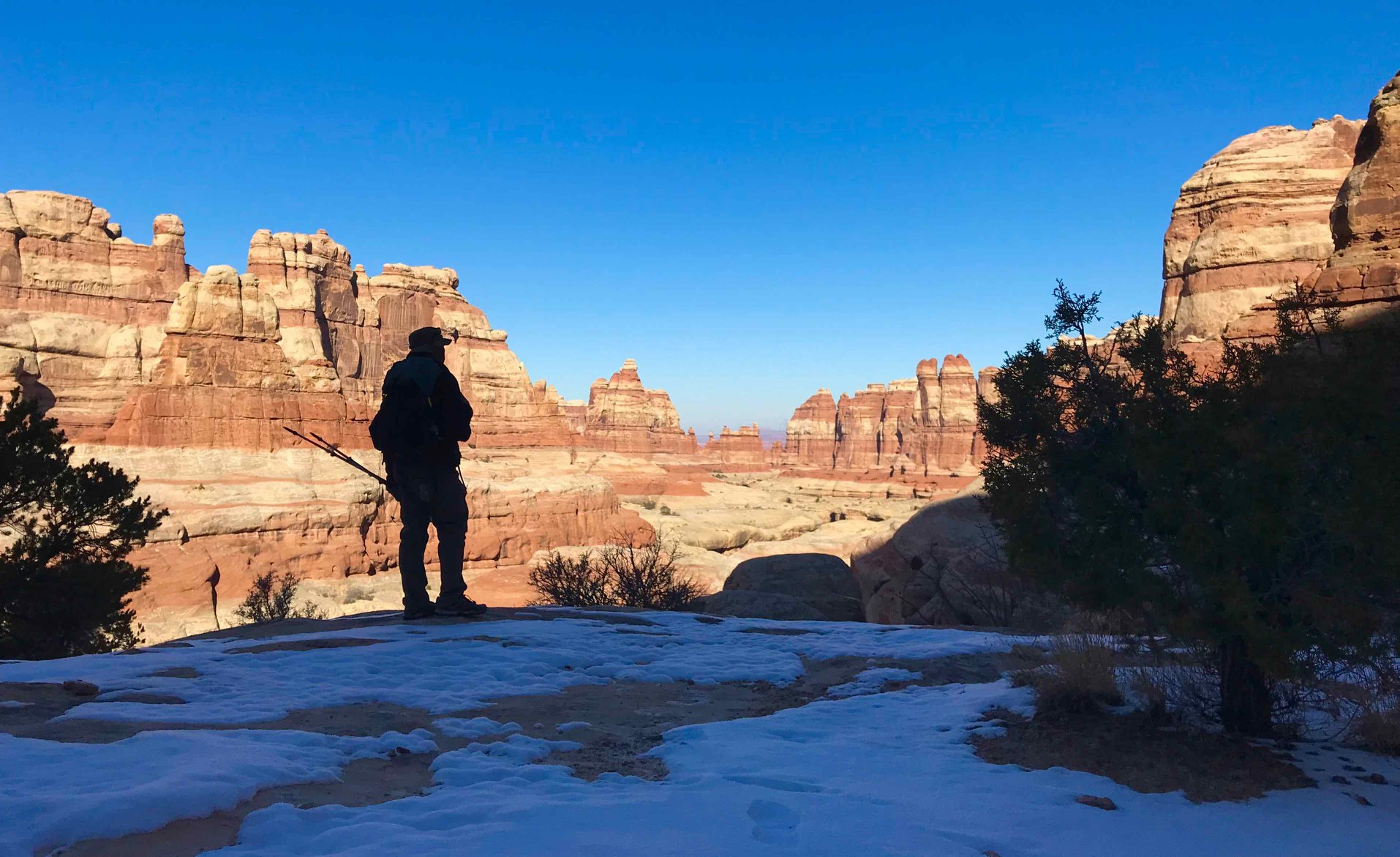 My day pack is, alas, the no longer made Gossamer Gear Type II Utility Pack. A pack sized large enough for whatever I need for day-use hiking, day tours, and even trail work. Durable, well-designed, and ample hip belt pockets for snacks. Joan “Utah-ized” the packs, so the water bottle pockets are now as equally durable.
