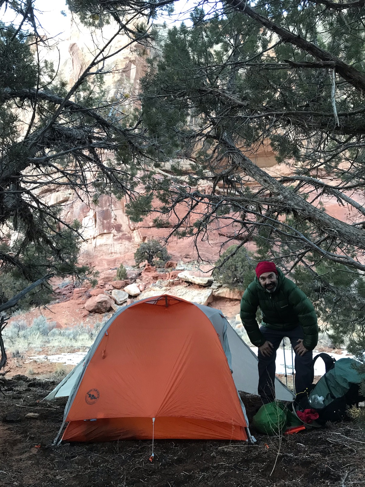 - The Big Agnes Copper Spur HV UL2 is something Joan purchased after some “spirited discussion” last December when the day turned drizzly and cold, we had fading daylight, and the rocky ground did not lend itself to easy staking. I never thought I’d use a free-standing tent for backpacking, but because we split the gear, I carry fewer ounces than carrying our previously used two-person tent that did not split easily. We purchased the 2019 version at a discount. Other than the awning, the new version has similar specs (if more expensive.)