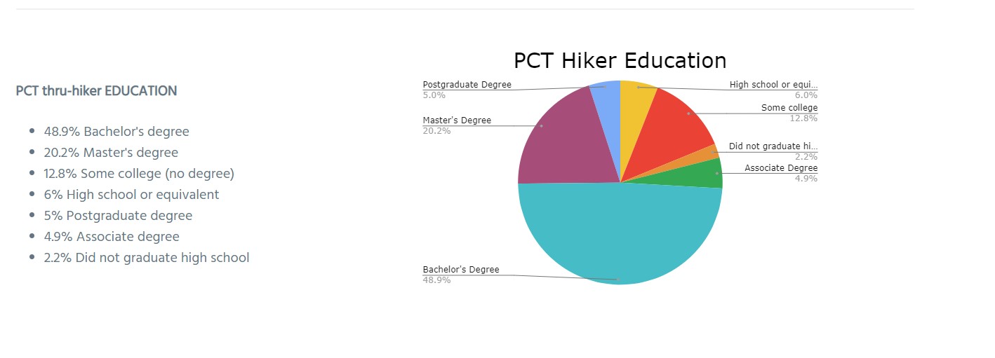 From “Halfway Anywhere.” Other reports from such organizations at the Appalachian Trail Conservancy, in conjunction with the NPS, showed similar stats. However, this pie chart is easy to read.