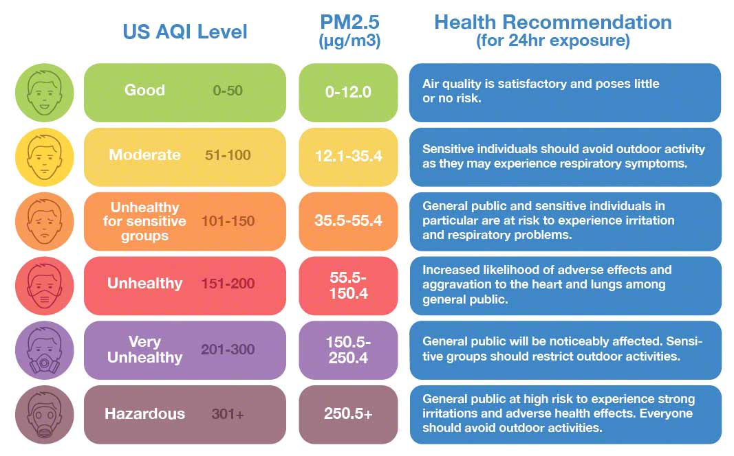 And another word of note: The AQI is based primarily on PM2.5 measurements, but not entirely as other pollutants potentially make up the AQI scale. However, PM2.5 is the measurement that tends to lead to a higher AQI index.