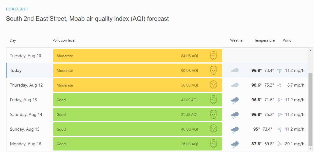 Of course, these forecasts get based on monitoring stations. More remote areas don’t have monitoring stations. And it would be best if you used an educated hunch to apply AQI to a more mountainous area or something nearby.
