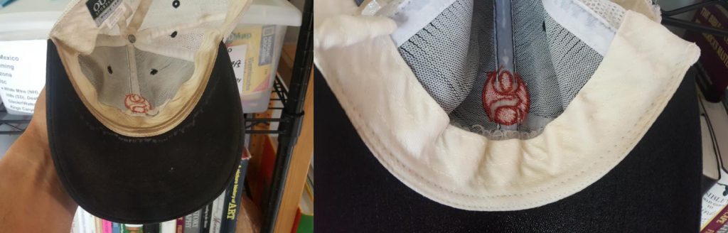 For me, I like to use this combo clean my ball caps in particular. I tend to wear a ball cap to and from hikes and around camp. And what I call “easy hikes” that still make a mild sweat over the long haul. The everyday ball cap ends up looking, well, quite nasty.