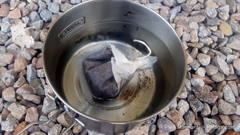 “Cowboy Coffee” is super simple to make even backpacking. All you need are coffee grounds, a pot, and a stove that can go to a low simmer (or a campfire in popular imagination). And there is a romanticism about Cowboy Coffee that exceeds even the percolator. Sit by the fire, sip the coffee, and look at the Milky Way above perhaps with a little nip of whiskey in the coffee. But sifting the grounds through your teeth is not always fun. And the cleaning and disposing of the grounds can be a hassle.