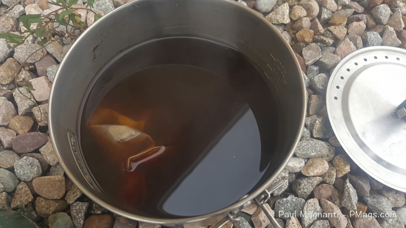 At some point during our trip, we talked about Cowboy Coffee. He shared a tip he uses. Essentially Cowboy Coffee without all the messy cleanup or chewy grounds. He even uses this method when he has house guests as you can make a very large batch easily versus the relatively small amounts of a drip coffee maker.