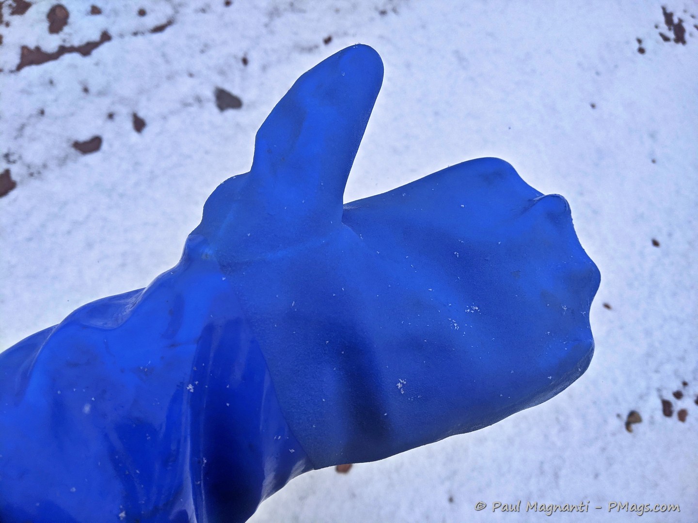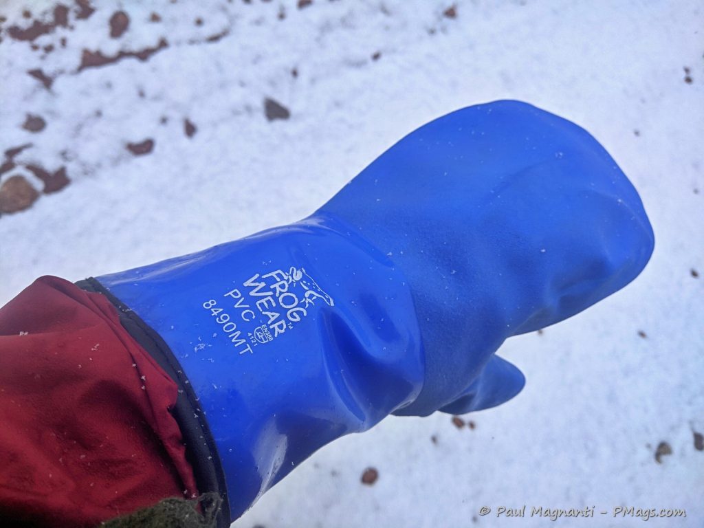 The “OSM” fit means it’s just large enough to fit my liner glove of choice with some room for pliability. The frog-like appendage gives a little extra gripping ability, too. This use makes sense since industrial workers, commercial fishers, and truck drivers (among others based on reviews) need warmth and functionality in cold and wet environments. The generous gauntlet style goes well up the rain jacket sleeve, too.