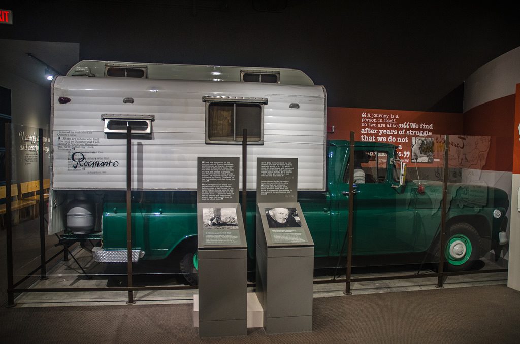 Though the Travels with Charley tale brought me to this center, I was mesmerized by the Grapes of Wrath display. Perhaps it was all the time I have spent in Dust Bowl areas, or seeing the readings, outtakes from plays, or movies, but Steinbeck’s words still resonate over seventy years after it was written. And continues to influence.
