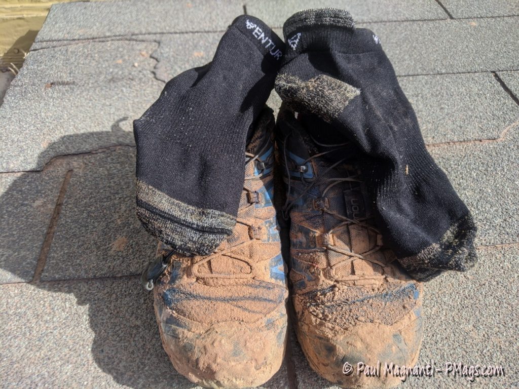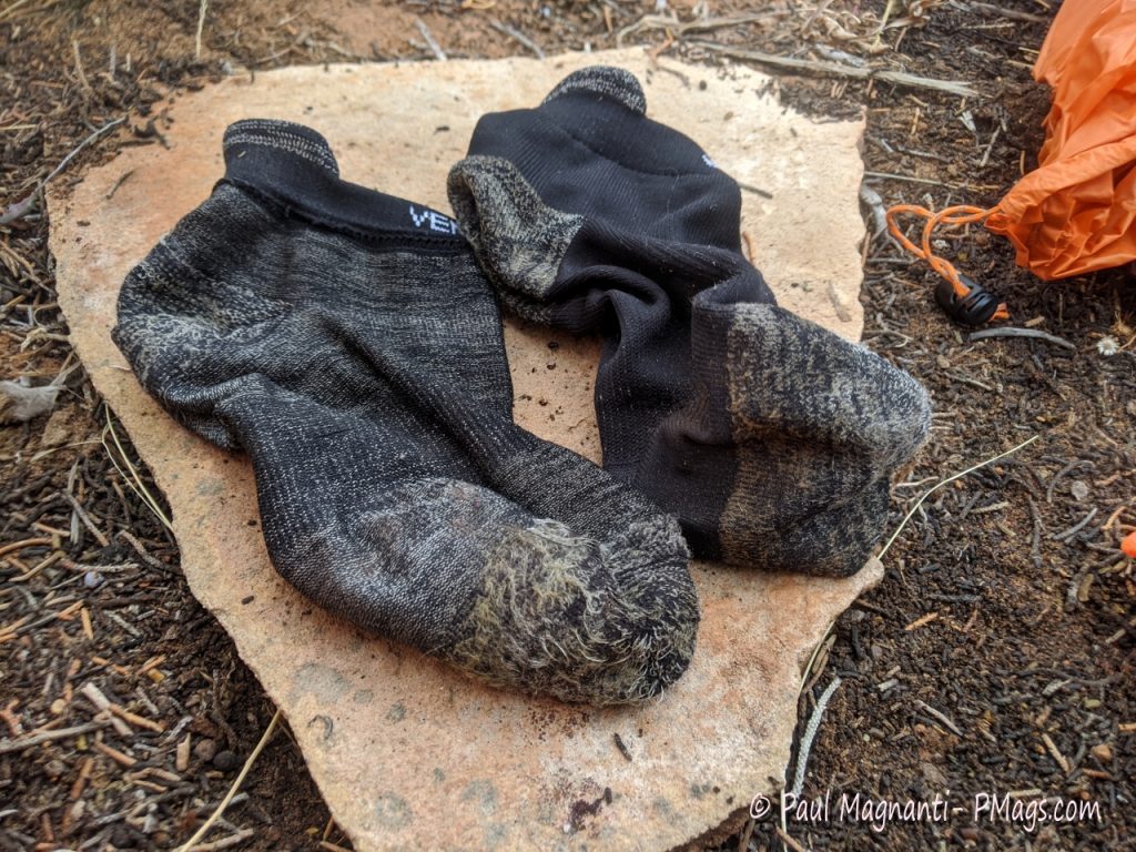 Well, after three months of using them, I did not pay too much attention to them. Meaning, they worked. I did not suffer blisters, they fit my feet with my preferred Salomon Ultras well, and they felt comfortable. I can’t ask too much more from a hiking sock. The compression areas “hugged” my feet to prevent slippage and bunching without feeling too tight. Truthfully, they felt very comfortable on my feet vs. other socks.