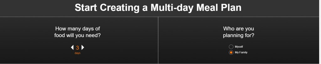 The screen below is for an individual, and you can up the calories ratio for a more vigorous pace, spicier foods, and vegetarian options, too.