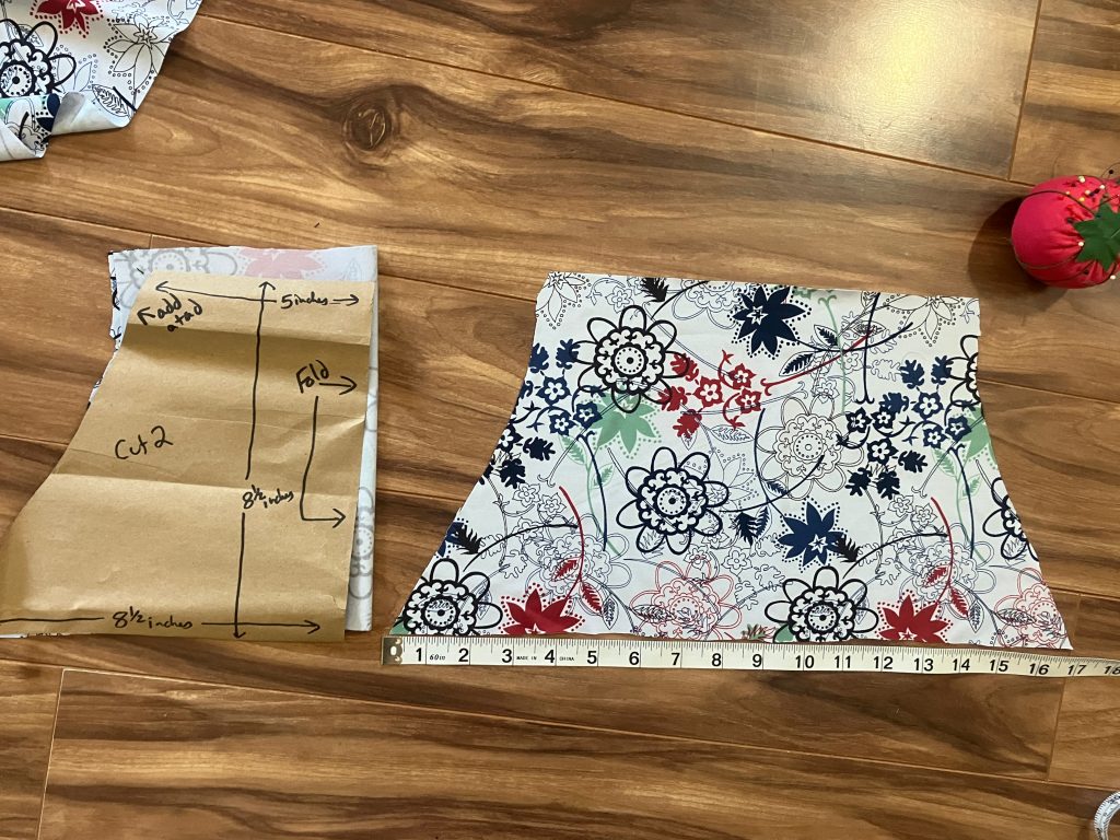 Extra material was added to the top part (shown at the bottom of the photo) to make the drawstring top.