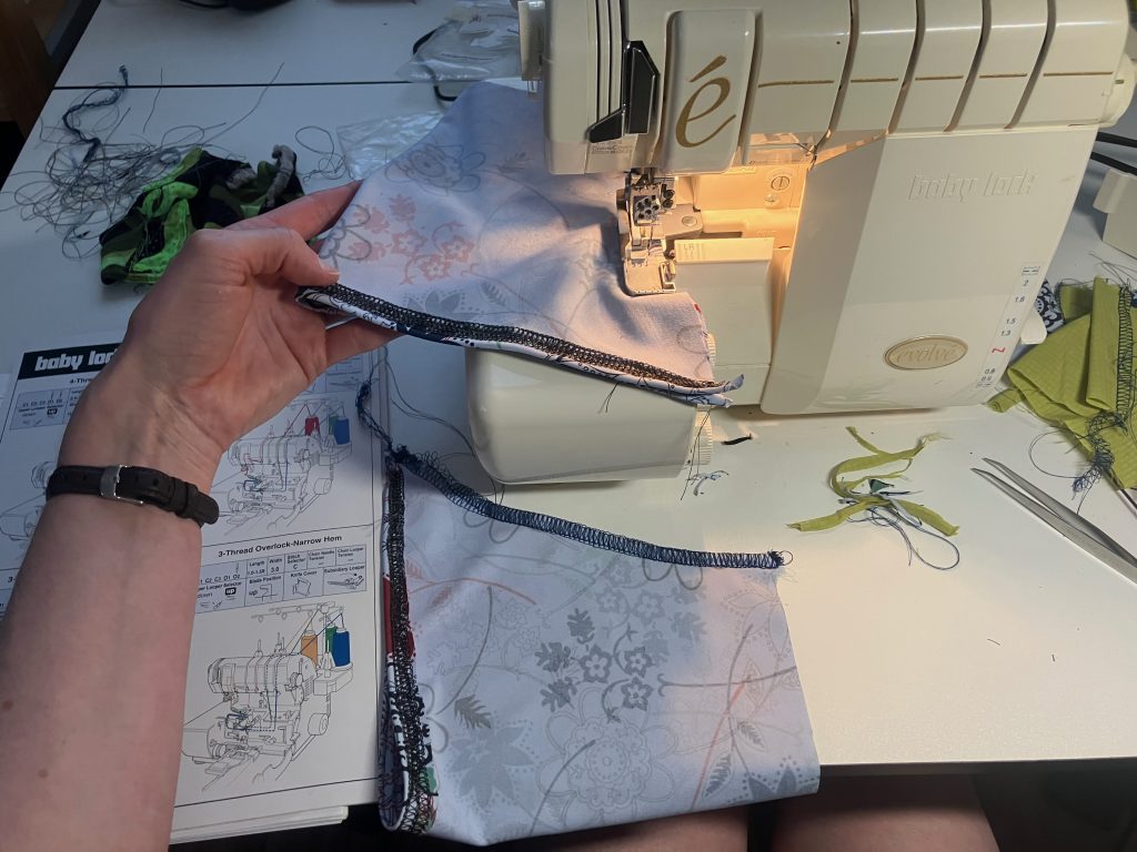 - Hemming the bottom edge with a Serger.