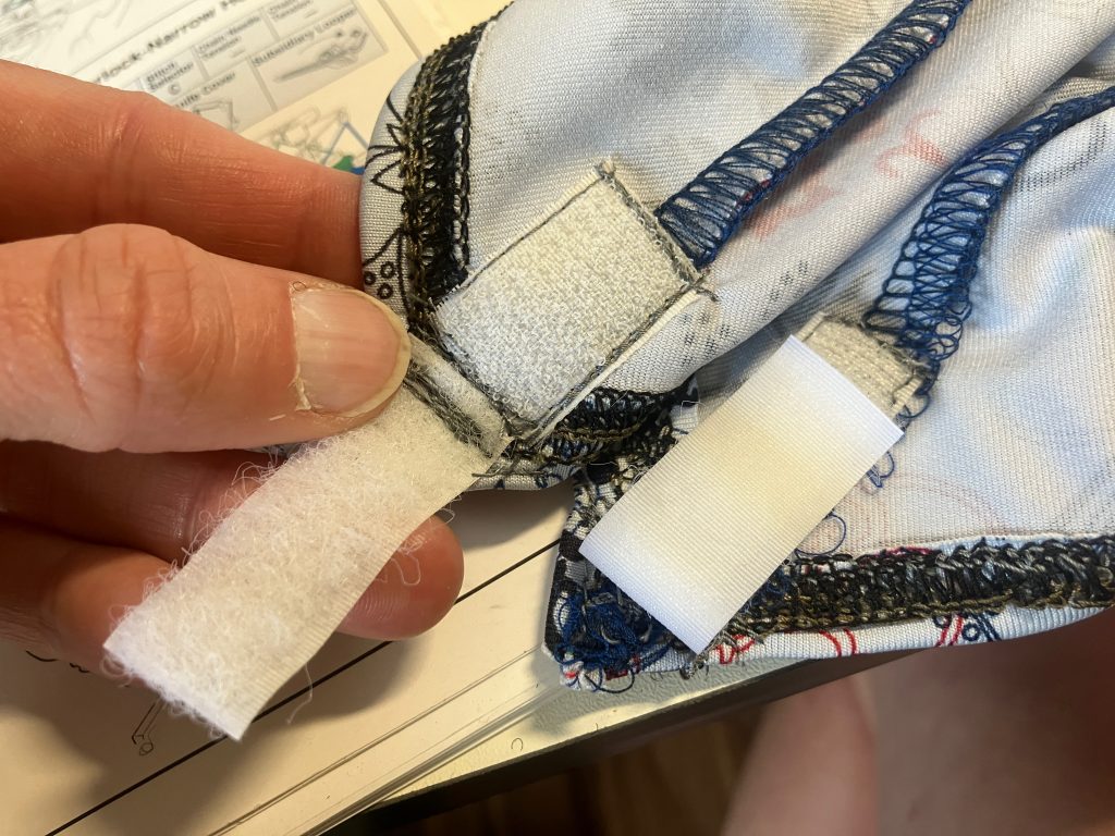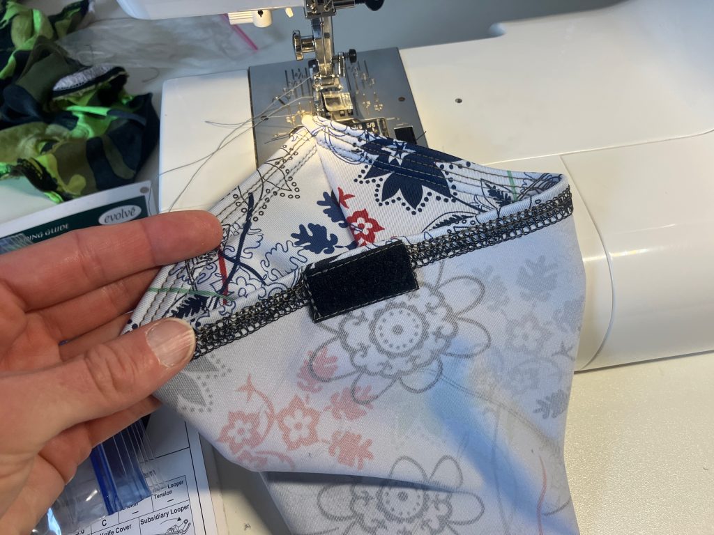 Hem the bottom edge of the ankle gaiter. I used a wide cover stitch on the Serger and sewed it twice for added durability.